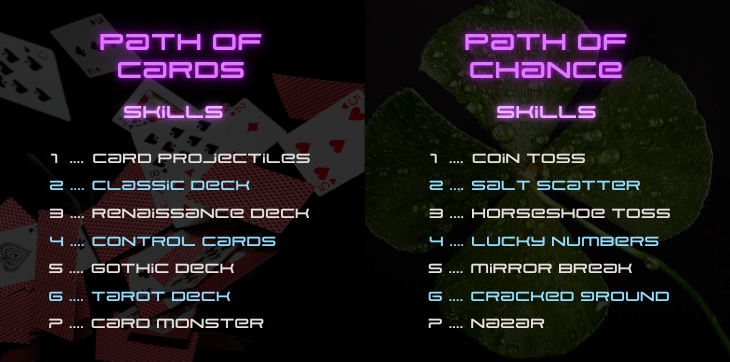 Gamblers get two epic skill trees. Path of Cards and Path of Chance.